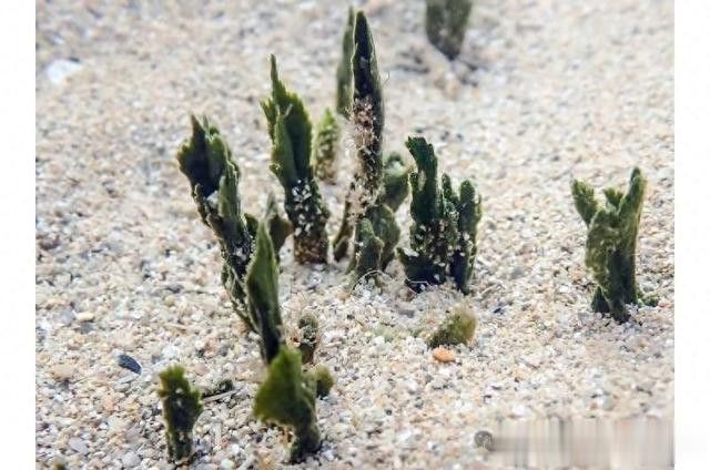 夏威夷奥阿胡毛纳卢阿湾粗砂中露出的皮革泥草(Avrainvillea lacerata)叶片。信用:SA Krueger-Hadfield