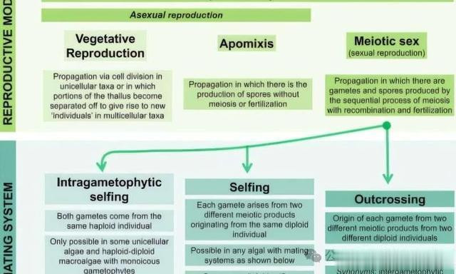 克鲁格-哈德菲尔德指出:“由于统称为藻类的生物种类繁多,我们在语言和行话方面存在问题,这使得很难将一个领域的发现应用到另一个领域,”他在回顾现有文献时,借助于制定一个流程图,其中包含与藻类繁殖相关的术语的同义词。