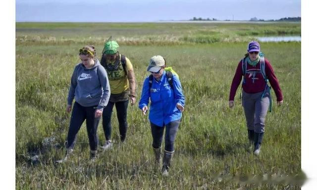 斯泰西·克鲁格-哈德菲尔德与助教和注册参加沿海海洋环境实地研究课程的本科生一起工作,该课程现在包括一个心理学部分。信用:詹姆斯爱